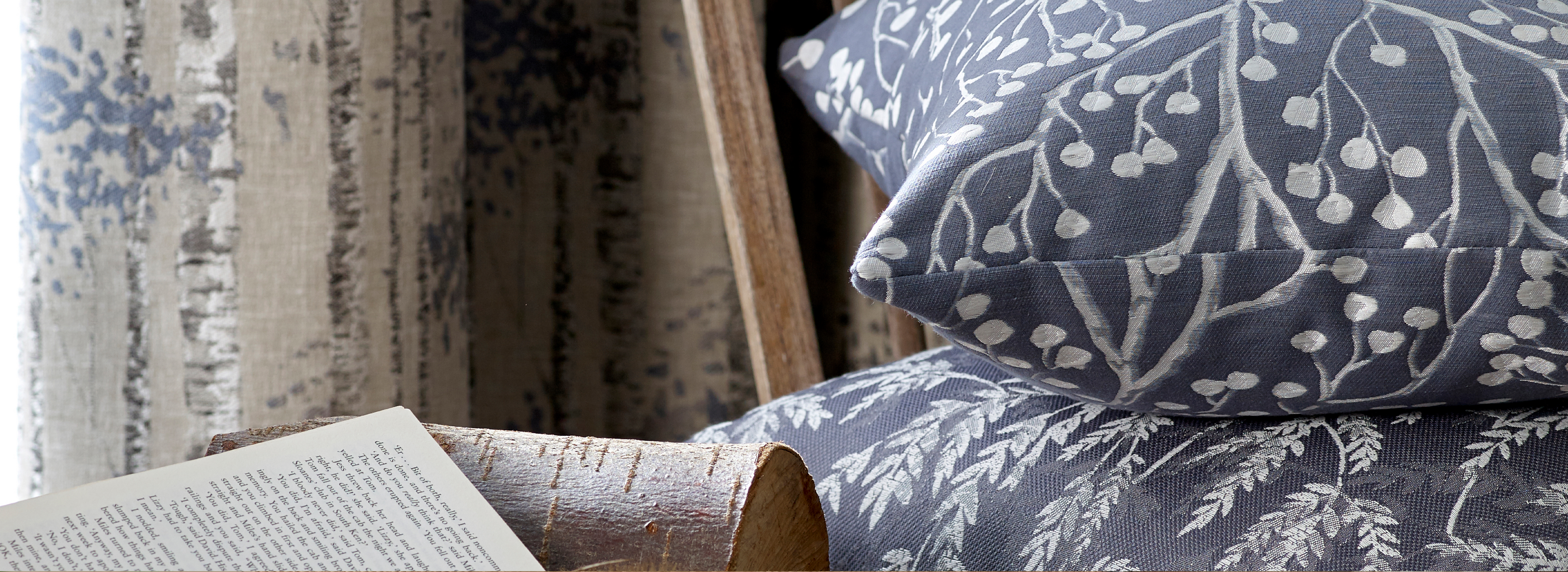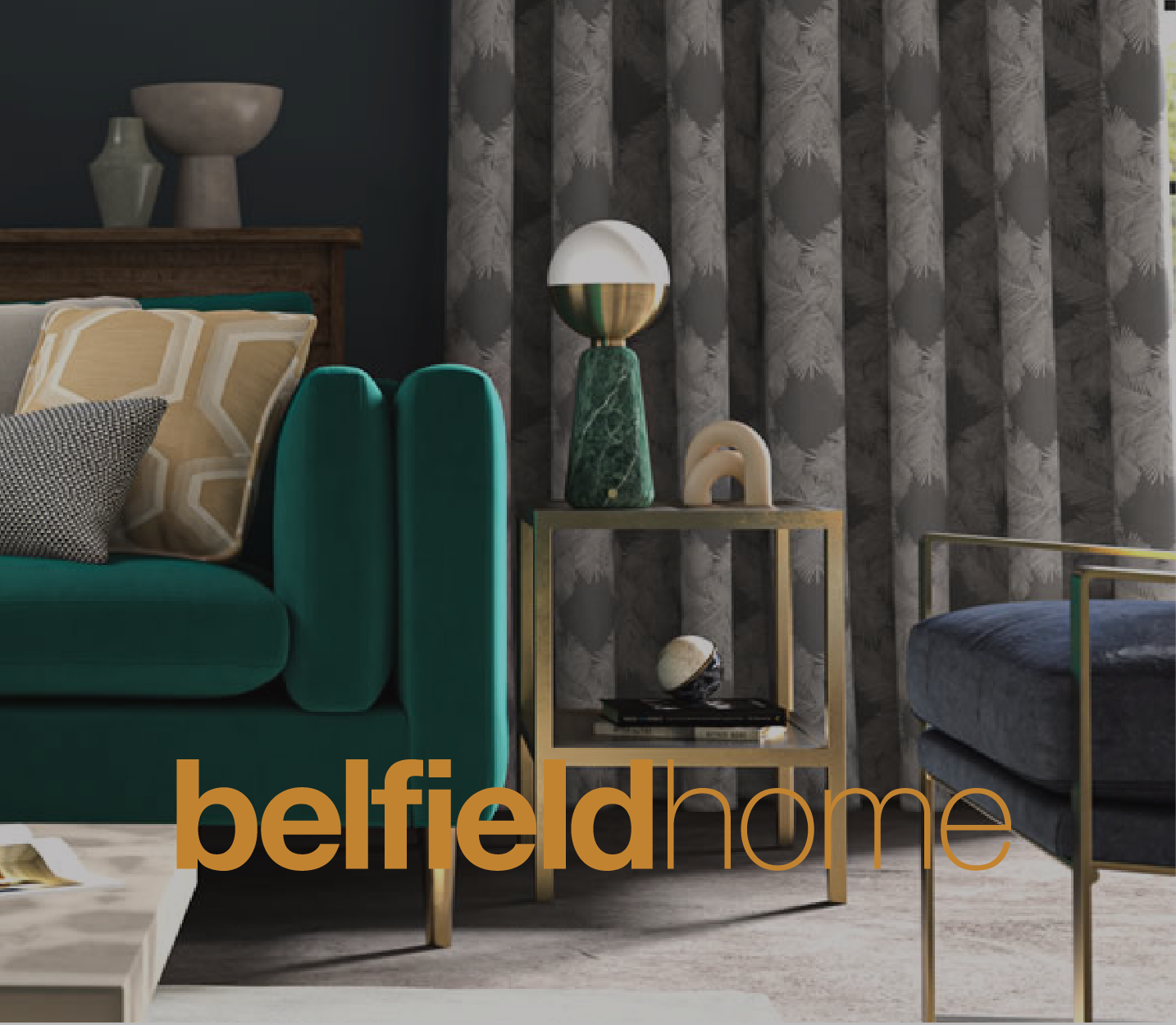 Belfield Home offer collections of fabrics and cushions. Offering high quality made-to-measure curtains and blinds.