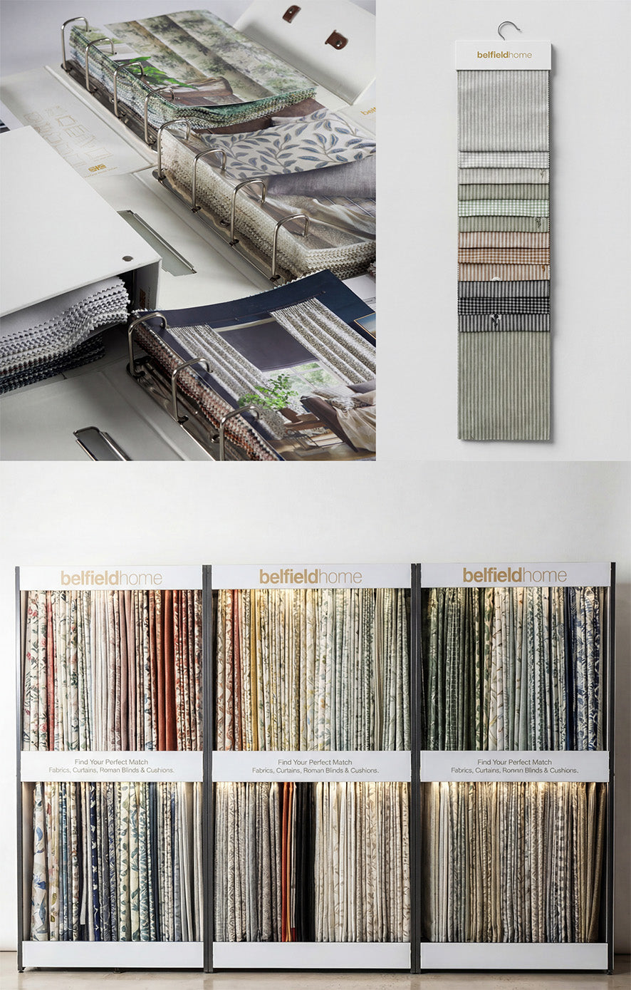 Belfield Home offer collections of fabrics and cushions. Offering high quality made-to-measure curtains and blinds.